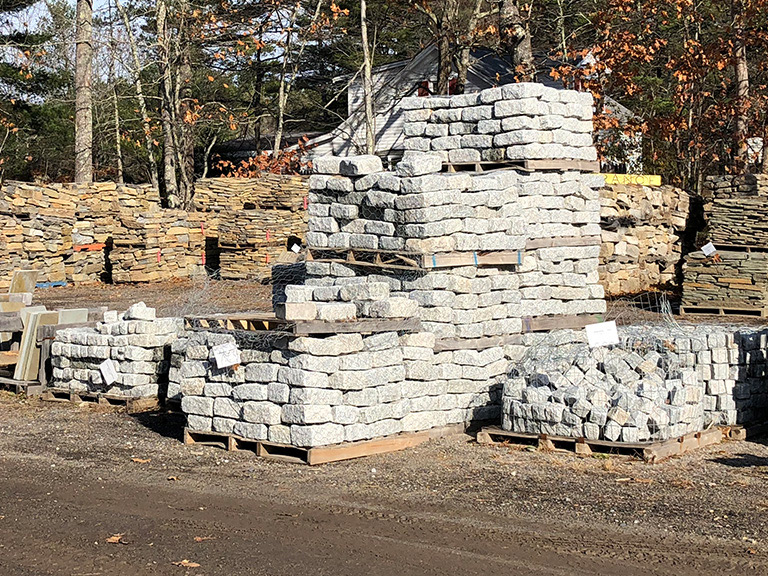 At Quonset Hardscape, Inc. we are a family-owned business that specializes in softscape and hardscape supplies. We invite you to come by our supply center to learn more about our products and let us help you choose the best product for your project. When it comes to natural stones and precast products you will find everything from small to large stones, precast retaining walls, and granite pieces including steps, walkways, fire pits and more. You’ll also find a large selection of sand, gravel, rock, loam and mulch.